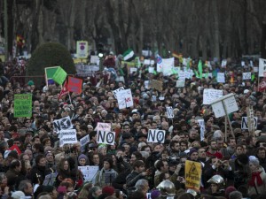 25.02.13Diversi scontri sabato sera nella capitale spagnola a margine della grande manifestazione anti austerity per dire no alle politiche del governo Rajoy. Sono quaranta, tra contusi e feriti anche se non in maniera grave, le persone che hanno dovuto fare ricorso alle cure mediche dopo alcuni scontri durante la grande manifestazione anti austerity svoltasi ieri sera nella capitale spagnola. Lo riferisce il ministero dell’Interno spagnolo che ha sottolineato come tra i feriti ci siano anche 12 agenti delle forze dell’ordine. Sempre secondo fonti ministeriali durante gli incidenti tra manifestanti e forze di polizia sono state arrestate 45 persone tra cui nove minorenni.